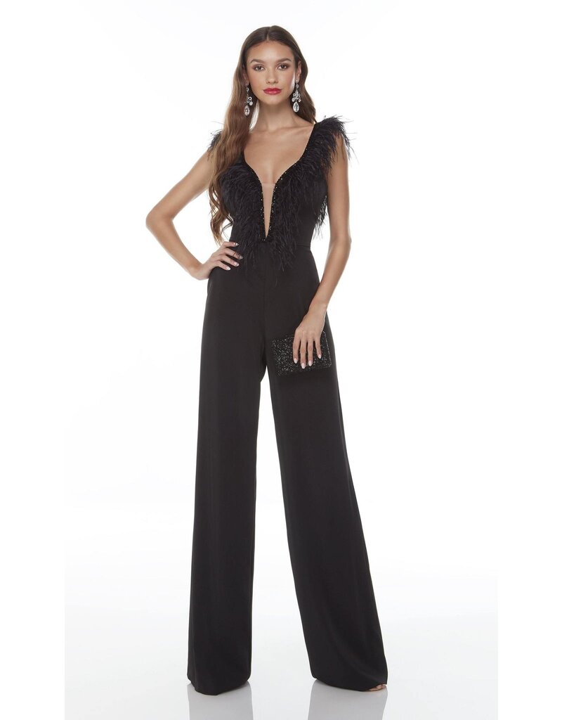 LONG JUMPSUIT, FEATHER V-NECK 1707